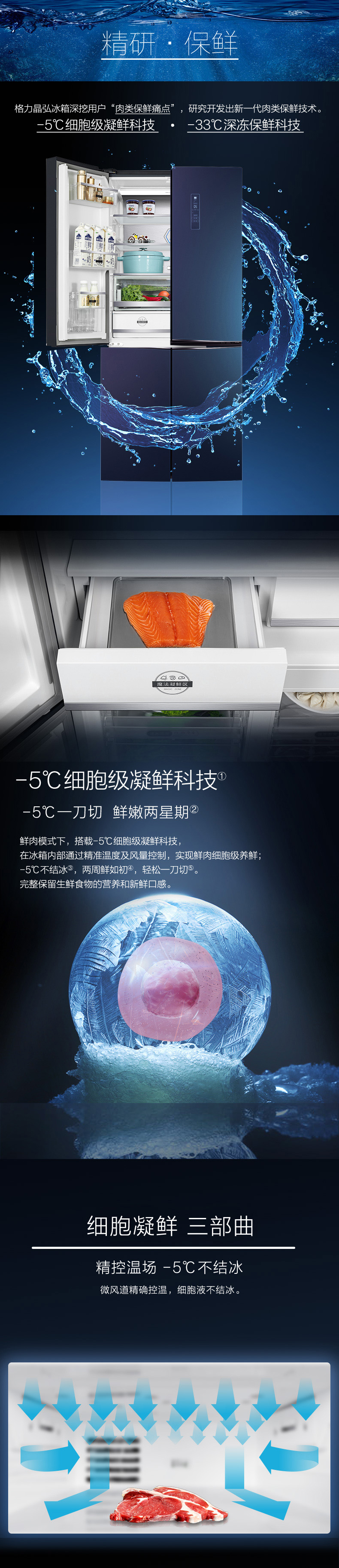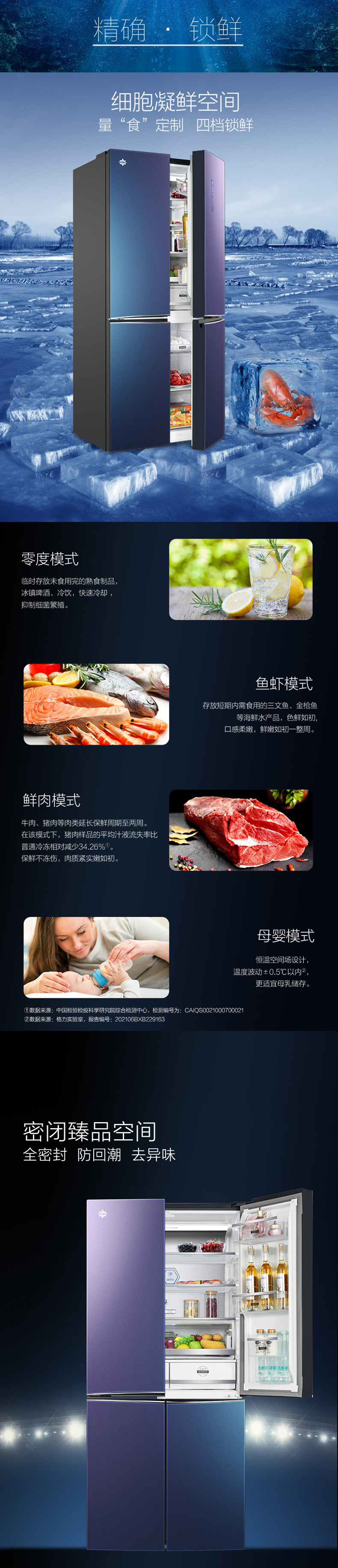 針對(duì)每種食材進(jìn)行精細(xì)化分區(qū),定制專屬保鮮艙,涵蓋肉類保鮮、果蔬保鮮、母乳儲(chǔ)存、干貨儲(chǔ)存以及除菌凈味五個(gè)維度,確保每一件食材的新鮮儲(chǔ)存