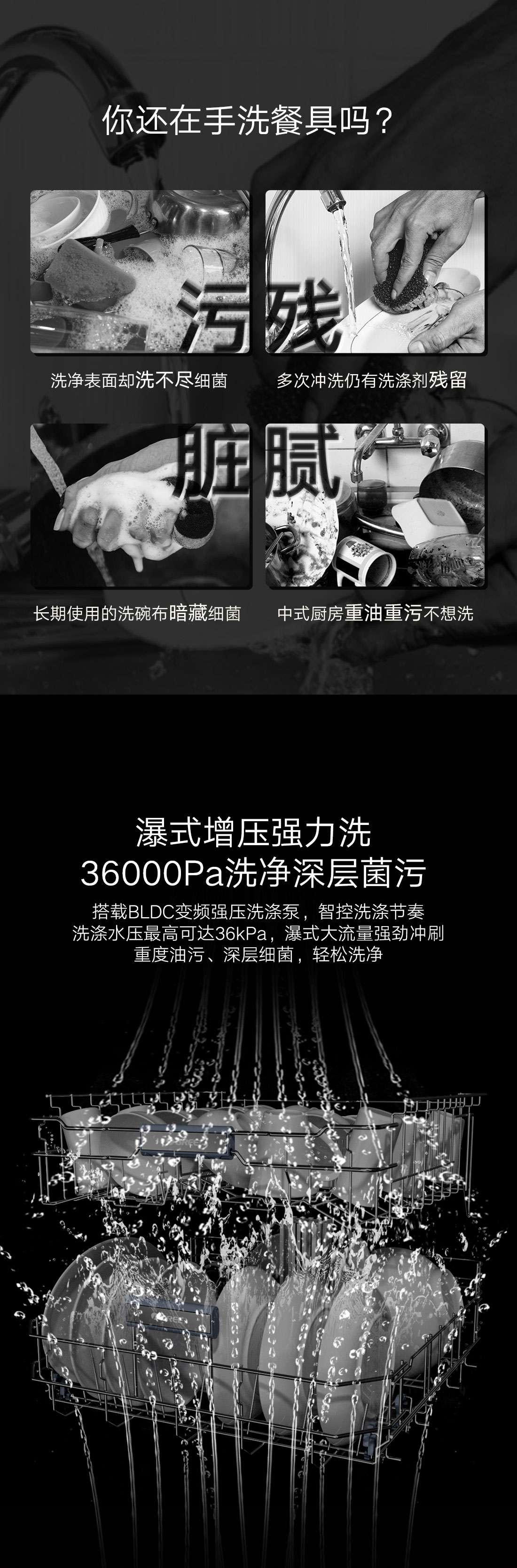搭載瀑式增壓強(qiáng)洗科技,36KPa洗凈深層菌污,除菌率達(dá)99.99%;洗烘除存一體,存放7天也干爽