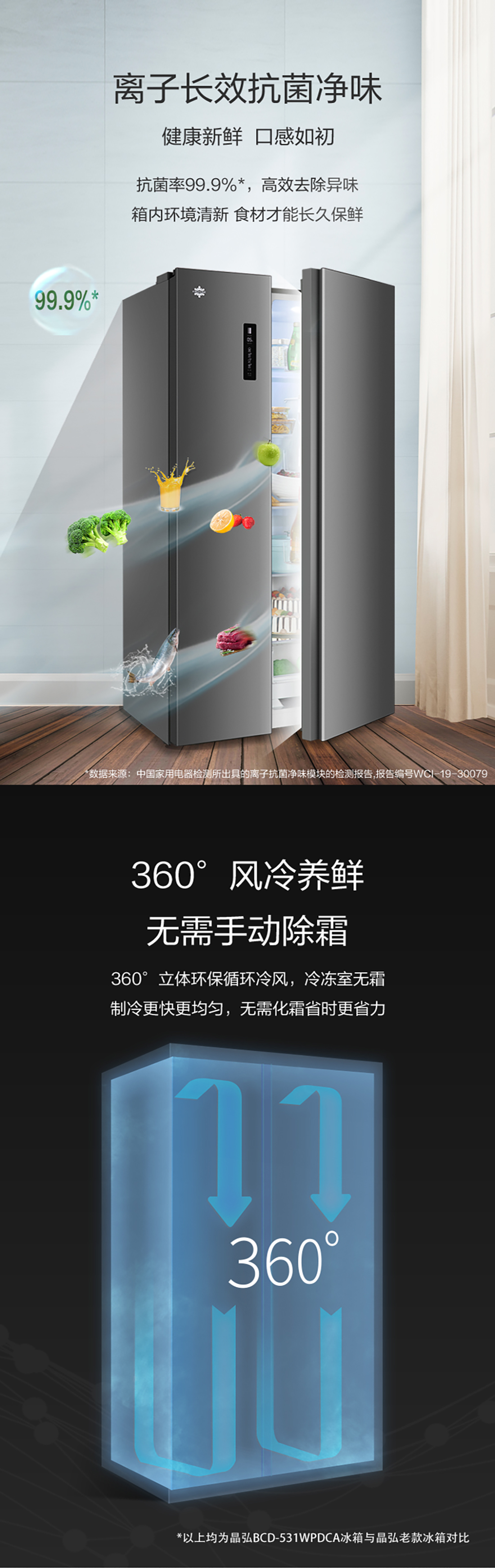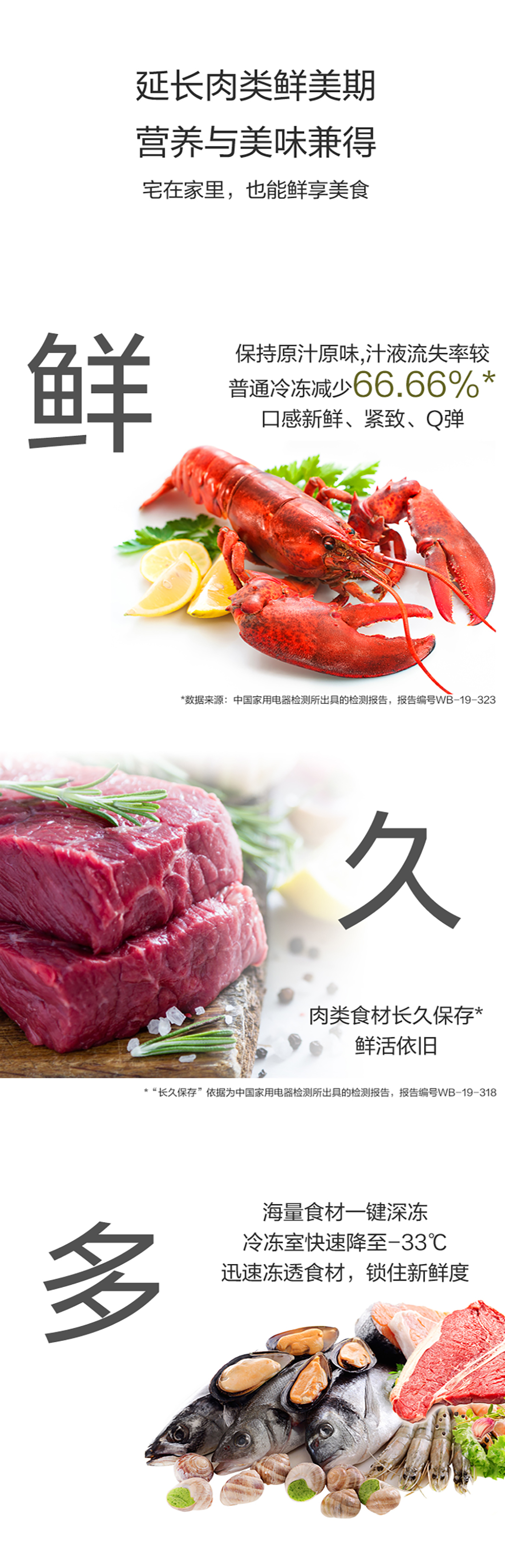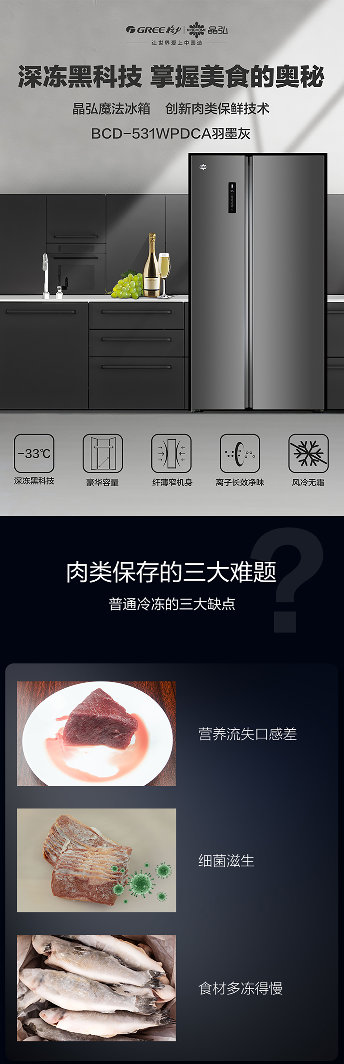 搭載-33℃深凍鎖鮮科技,肉汁飽滿更長久。采用離子長效抗菌凈味,抗菌率高達(dá)99.9%。風(fēng)冷無霜,拒絕風(fēng)干,食材水潤新鮮。