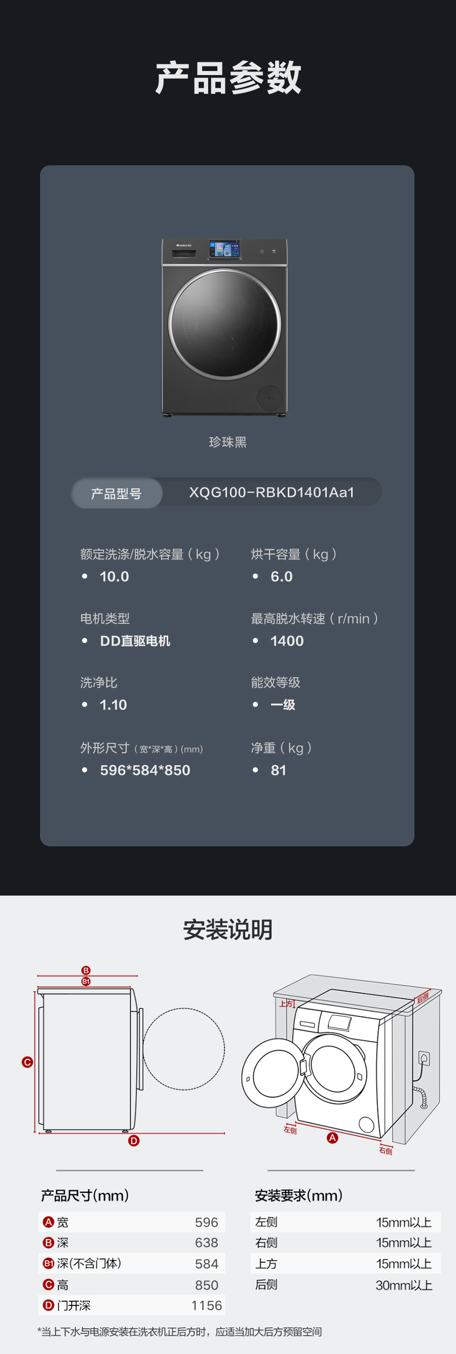 1. 額定洗烘容量: